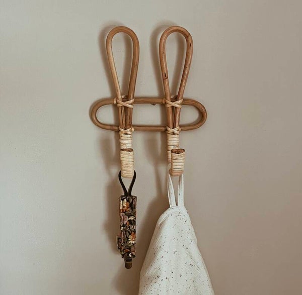Dit leuke rotan kapstokje met twee haakjes. Je hangt het kapstokje gemakkelijk aan de muur met een schroefje (welke niet meegeleverd wordt). Leuk om de babykamer mee af te stylen!