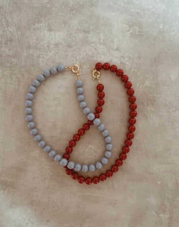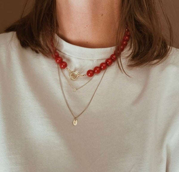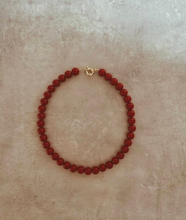 Ketting Mia is gemaakt van grote, donkerrode kralen! Helemaal de trent van nu & perfect voor de herfst!